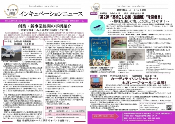 ご興味のあるかたは、創業支援ルームまでご連絡ください。