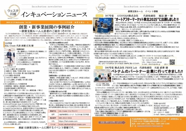 ご興味のあるかたは、創業支援ルームまでご連絡ください。