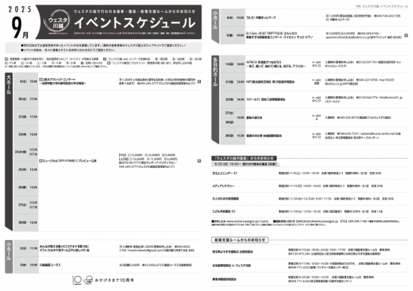 9月・10月ウェスタ川越 イベントスケジュール」を発行いたしました!